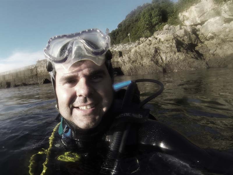 En poco tiempo, las palabras no servían para describir todo lo que siento dentro del agua. Fue entonces cuando, gracias nuevamente a un amigo, me llegaron noticias de la cámara GoPro, con la que podría grabar dentro del agua de manera cómoda y enseñar a todos lo que hay abajo. En compañia de un maestro del mar, amigo y compañero de buceo sigo aprendiendo en cada inmersión, además de la ayuda del club de actividades subacuaticas de la Real Sociedad del que soy socio.